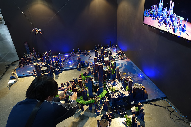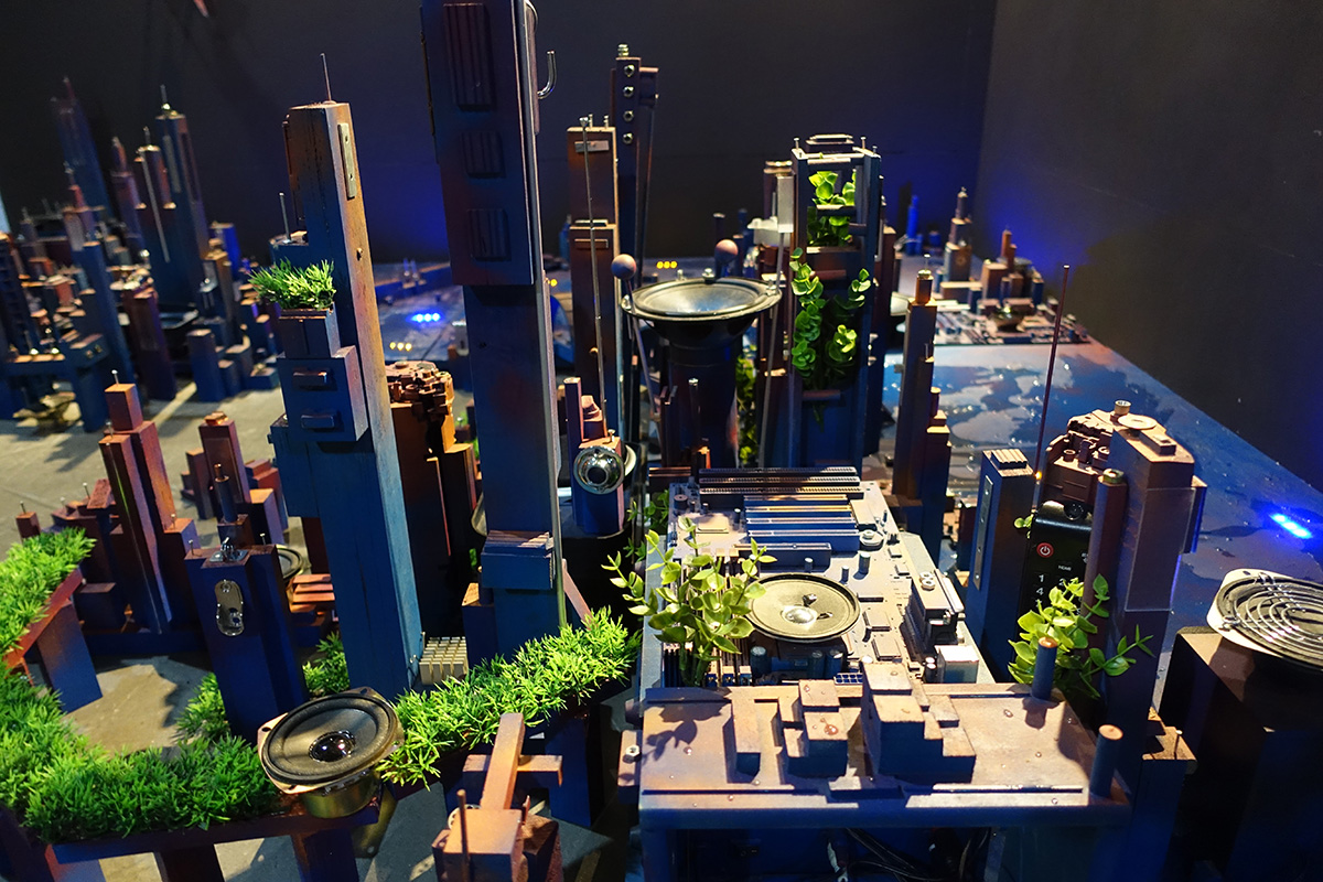 The laser cow was admittedly pretty cool even tough I’m not entirely sure of what the message was but my philosophy is, “When in doubt, call it art,” and that served me well for the day. There were some exhibits that didn’t leave me with any doubts like the cool exhibit of a city model made with electronics parts.