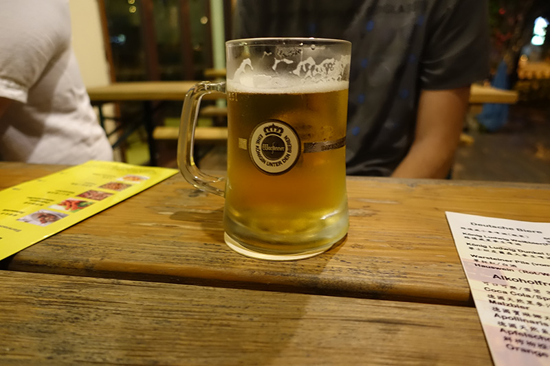 When we arrived, our host asked if anyone there spoke German, at which the owner of the place immediately appeared and started speaking in German, much to my traveling companion’s delight. After a bit of conversation in German we were seated outside and talked with the owner. It turns out that Deutsche Haxenstube is run by a Taiwanese man who lived in Germany for 25 years before coming back to Taiwan to take care of his mother. It was clear that he was pleased to find someone with whom he could speak in German about Germany and my companion was equally pleased to be able to speak more in his native tongue than he had in the last 6 months altogether.