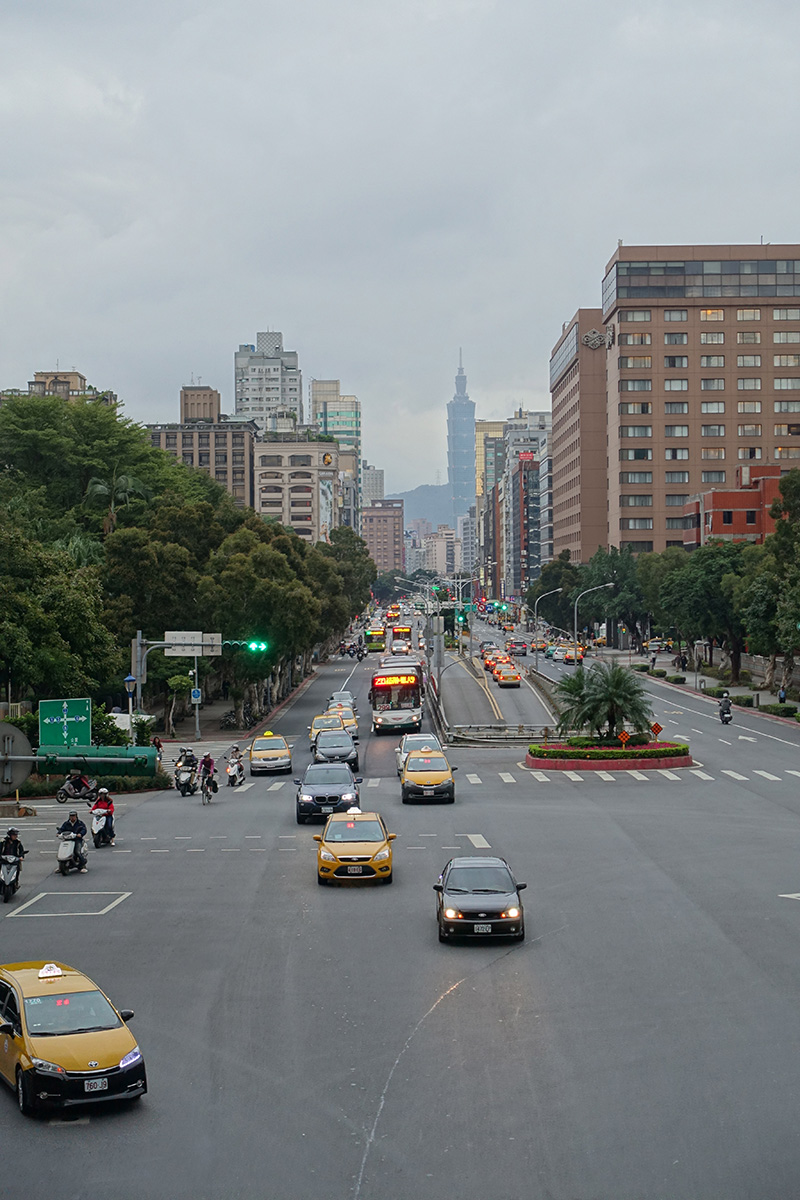 Kinda cool, huh? After wandering around the park a bit more, stepping into shops, watching street performers, and witnessing model shoots, we headed back to Zhubei in the evening for a little rest before heading out to a local night market. The sky was cloudy but we could check out the Taipei tower from a pedestrian overpass on the way to the station.