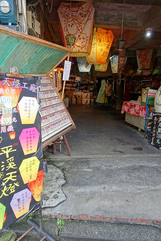 The towns in the Pinxi District are famous for their sky lanterns and an annual festival in which thousands of sky lanterns are released at once into the night sky. We found various shops on the old street selling sky lantern souvenirs.