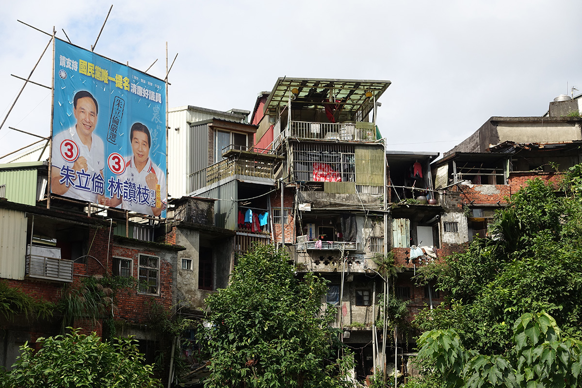 That huge billboard is advertising candidates for the election scheduled for the end of the month. These types of signs are VERY common throughout Taiwan and show a picture of the candidate along with his number (according to this poster, we should vote for candidate #3). The photos often include the candidates holding out their fist like that (which means guts/power/determination/etc.) or other gestures like a thumbs up or clasped hands (“thank you for voting for me”). There are also lots of little trucks with speakers on them driving around cities and small towns urging people to vote for a particular candidate. Democracy in action!