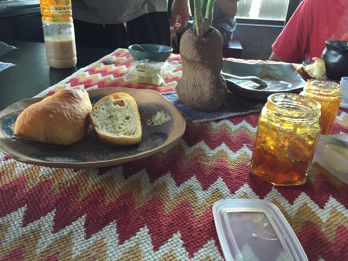 It seems like a very little thing and it’s easy to laugh at this, though truth be told we even surprised ourselves by how much we enjoyed such a simple repast. We had noticed that most of the foods we had eaten in Taiwan are quite soft and we missed food with crunch and a heartier texture so this real french bread really hit the spot. We were even able to toast the bread as one of the rooms included a kitchen.