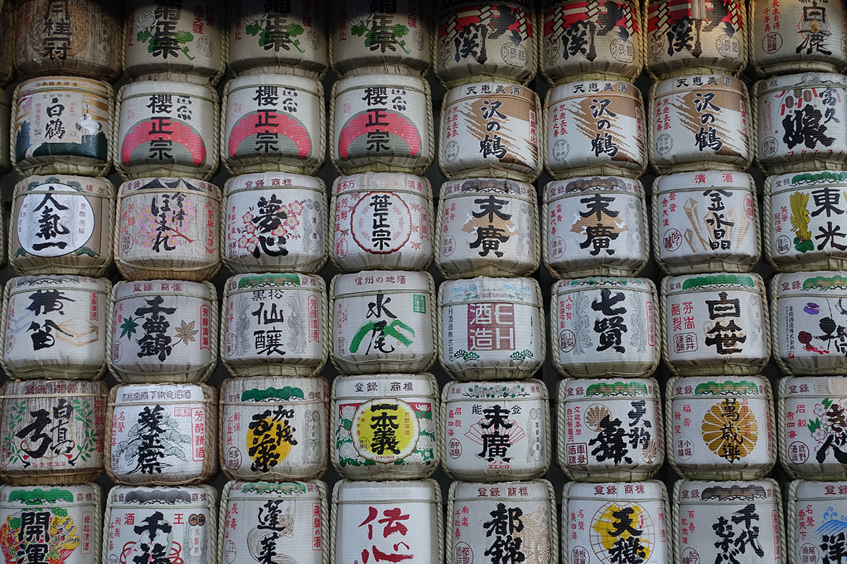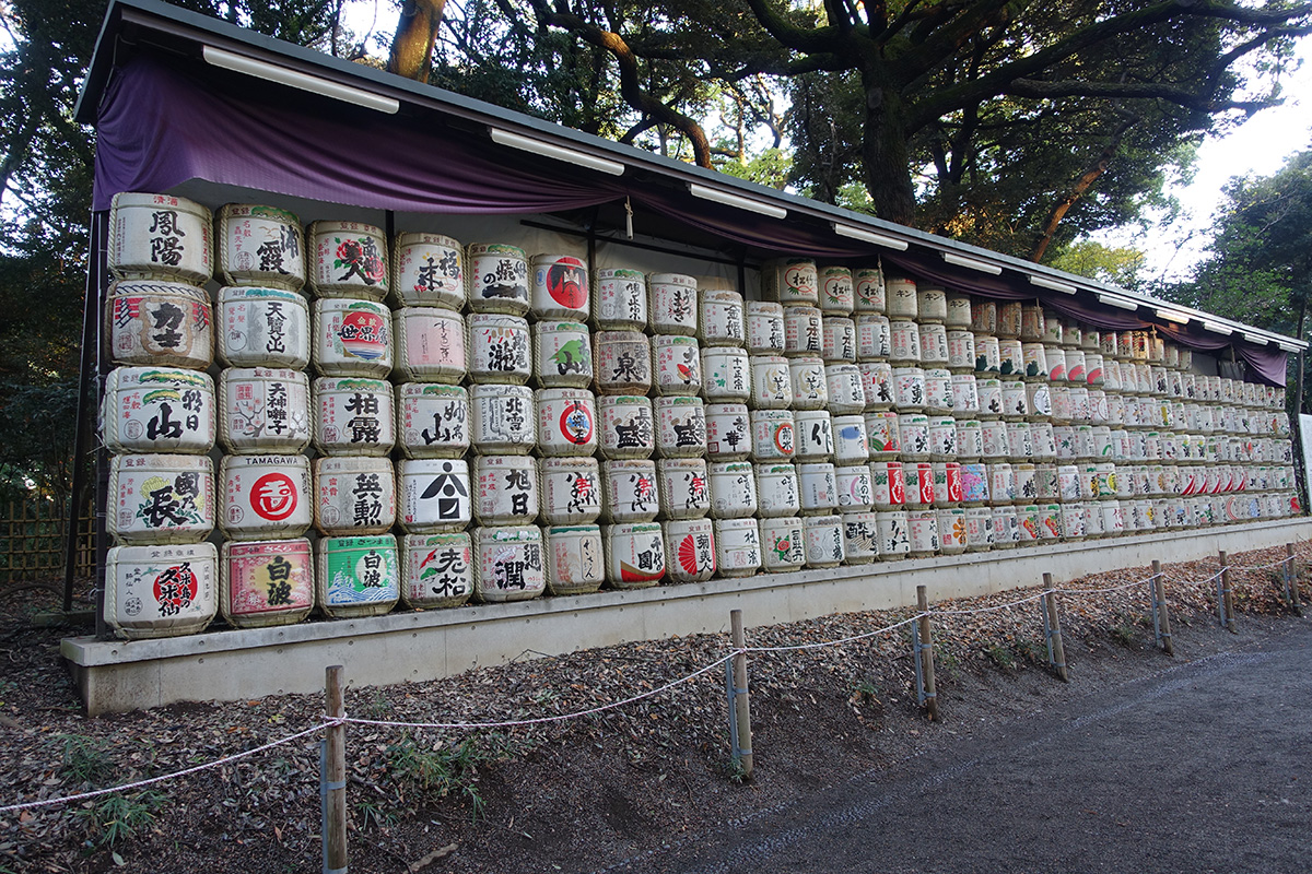 The Shrine Park was finally closing so we headed back towards Harajuku. On the way, we passed a massive display of sake barrels.