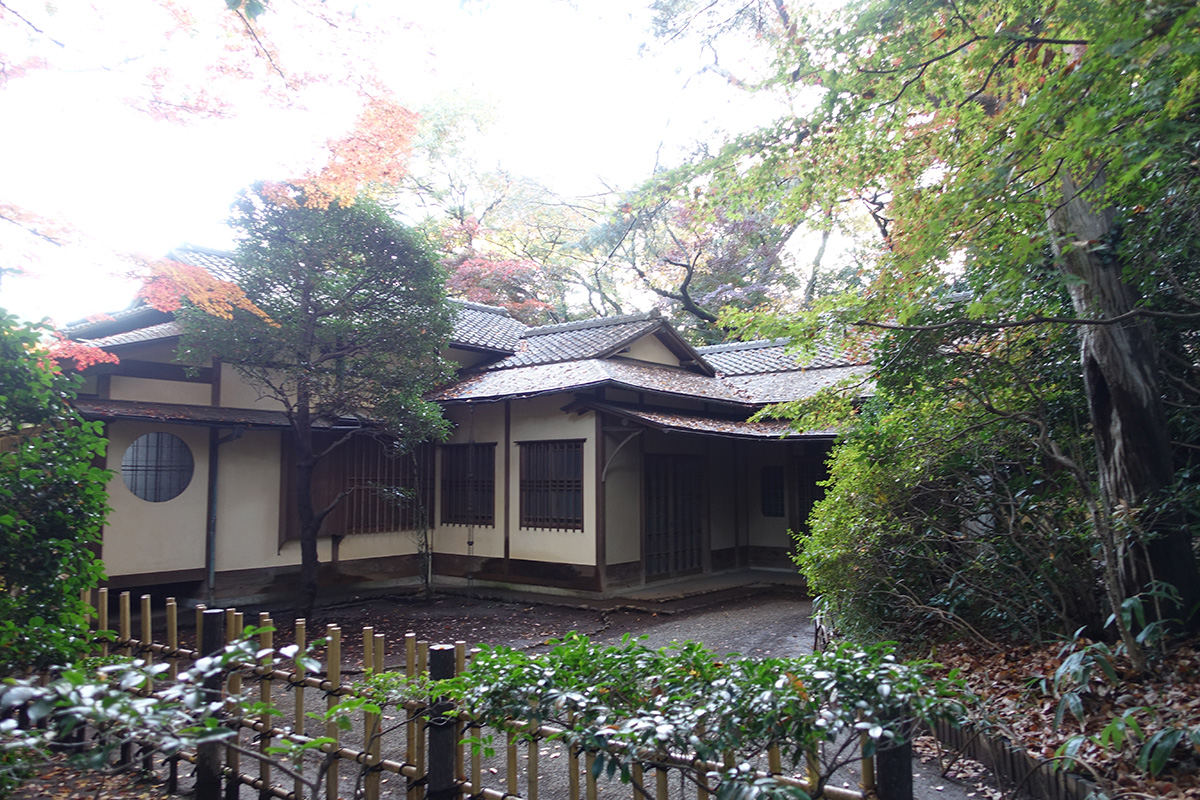 As you can tell by the long shadows, the sun was setting so we left the shrine itself to stop by its Iris Garden before the whole facility closed at 4 p.m. This tea house was near the entrance of the park.