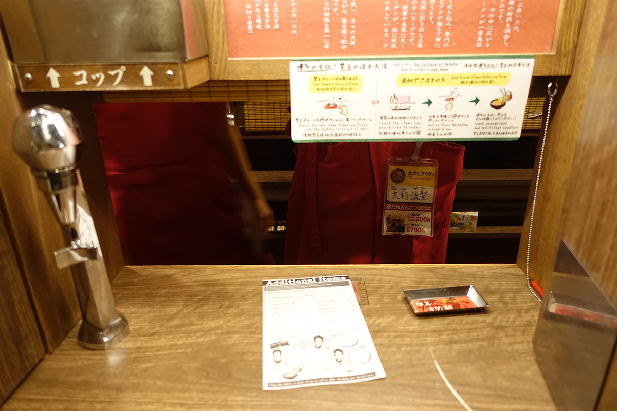 Following up on my Day 1 post about Ichiran, here is what the “voting booth” style of bar service looks like.
