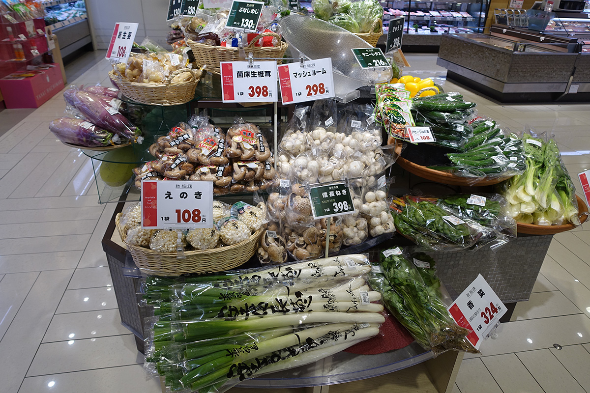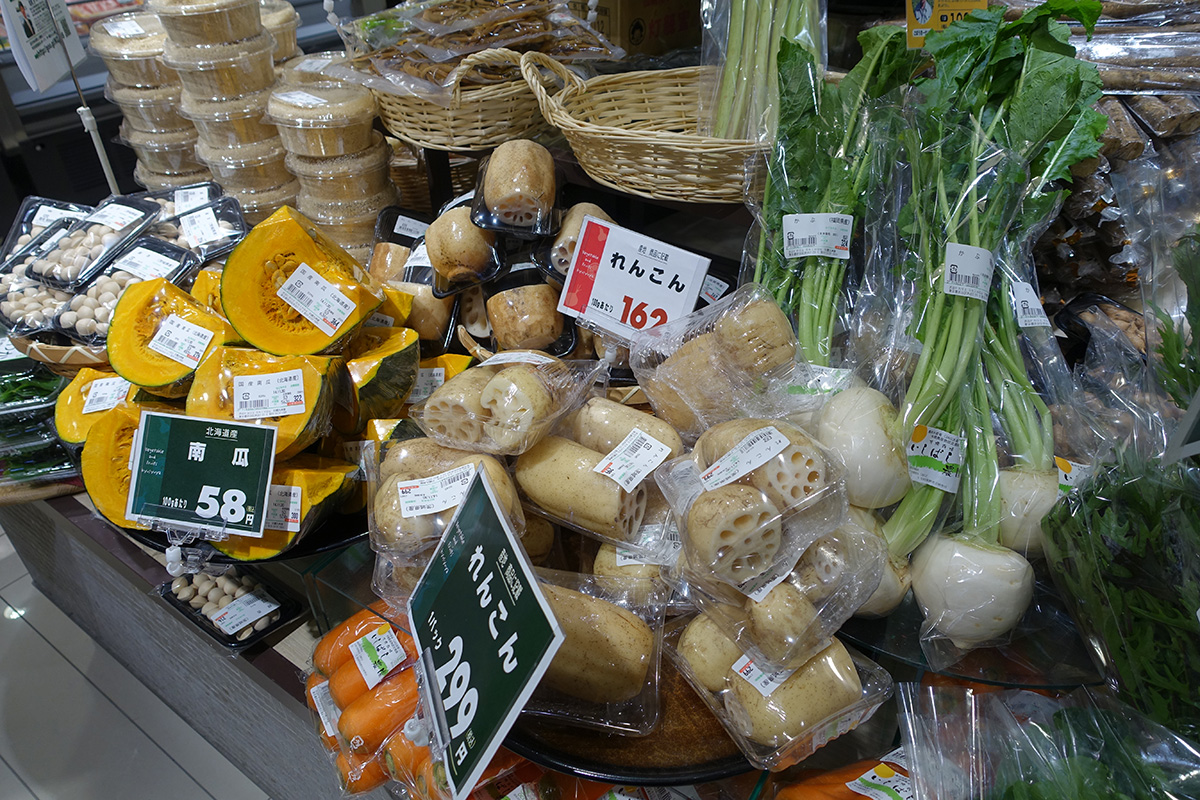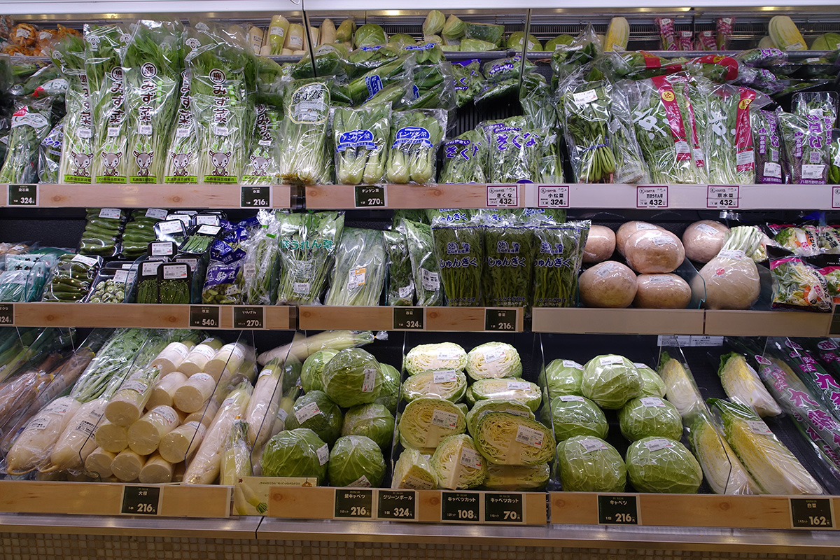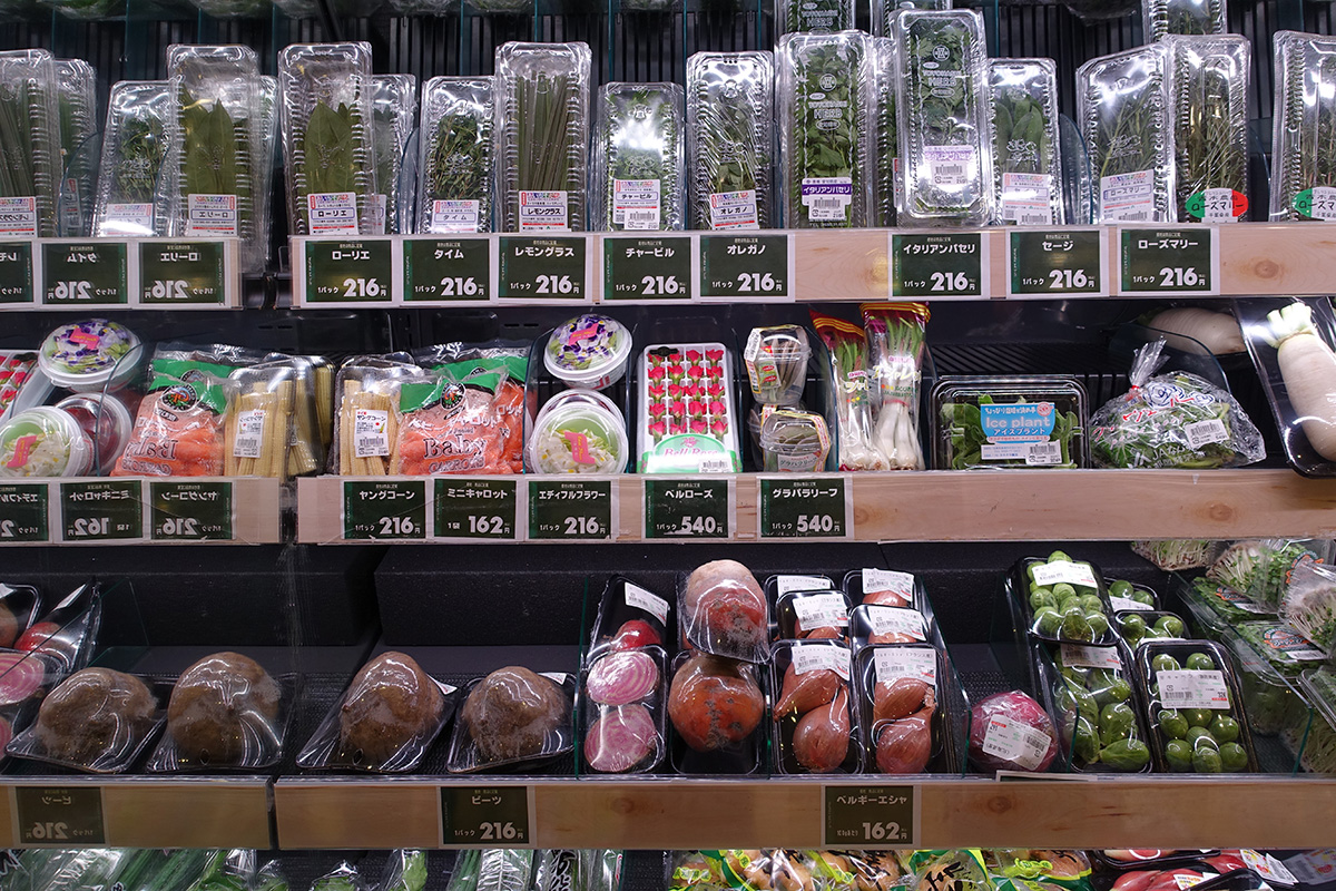 One of the things that struck me was that all produce is packed in plastic. Unlike the U.S. where fruits and vegetables are typically out for one to choose herself, in Japan fruits and vegetables come pre-packaged.