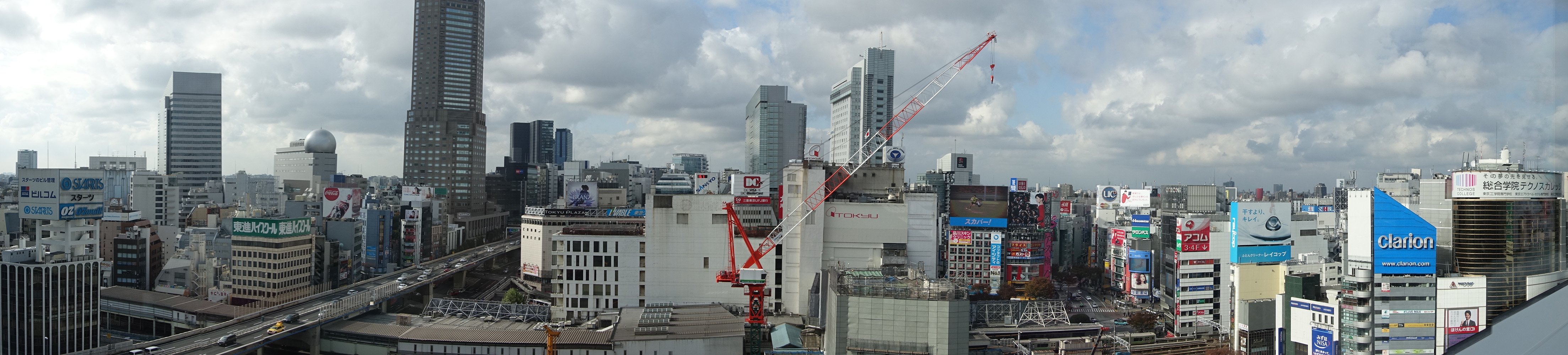 Off in the distance you can see a patch of trees peaking over the buildings – that is Yoyogi Park, which we visited on Day 2. Here is a panoramic shot of the view we had.