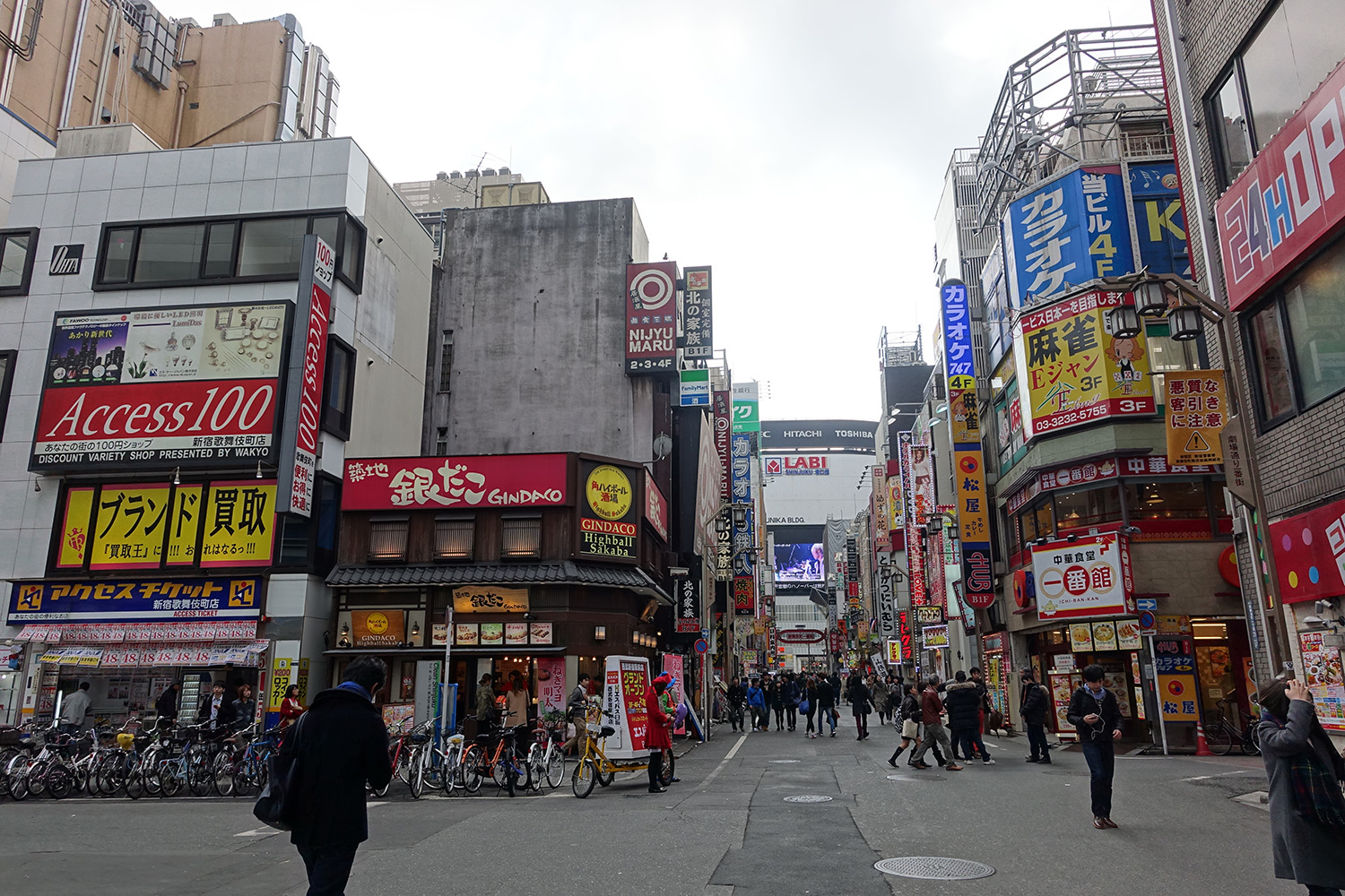 So many sights and sounds! Small hole-in-the-wall restaurants are next to small knick-knack shops which are next to karaoke bars which are next to nightclubs which are next to hostess clubs which are next to love hotels. Something for everyone!