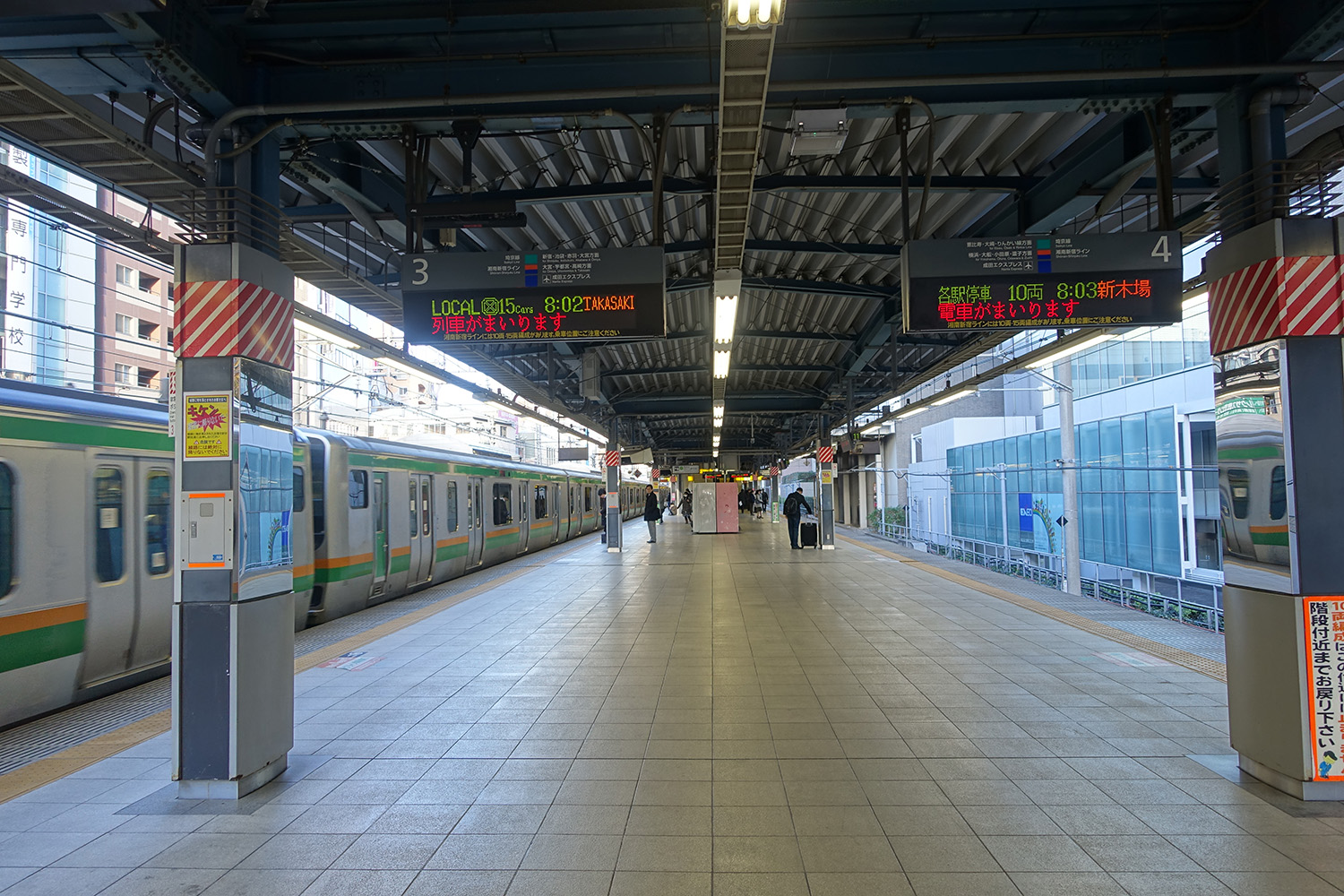 The drinks with the blue icon next to their prices are cold and those with the red icon next to their prices are hot. Pretty neat, huh? I chose the hot chocolate since that seemed to be a safe choice and it was actually pretty good. And warm. “Warm” being the main point. We ended up huddling by this vending machine since that was somewhat protected from the biting wind. Here is what the platform looked like facing away from the vending machine.