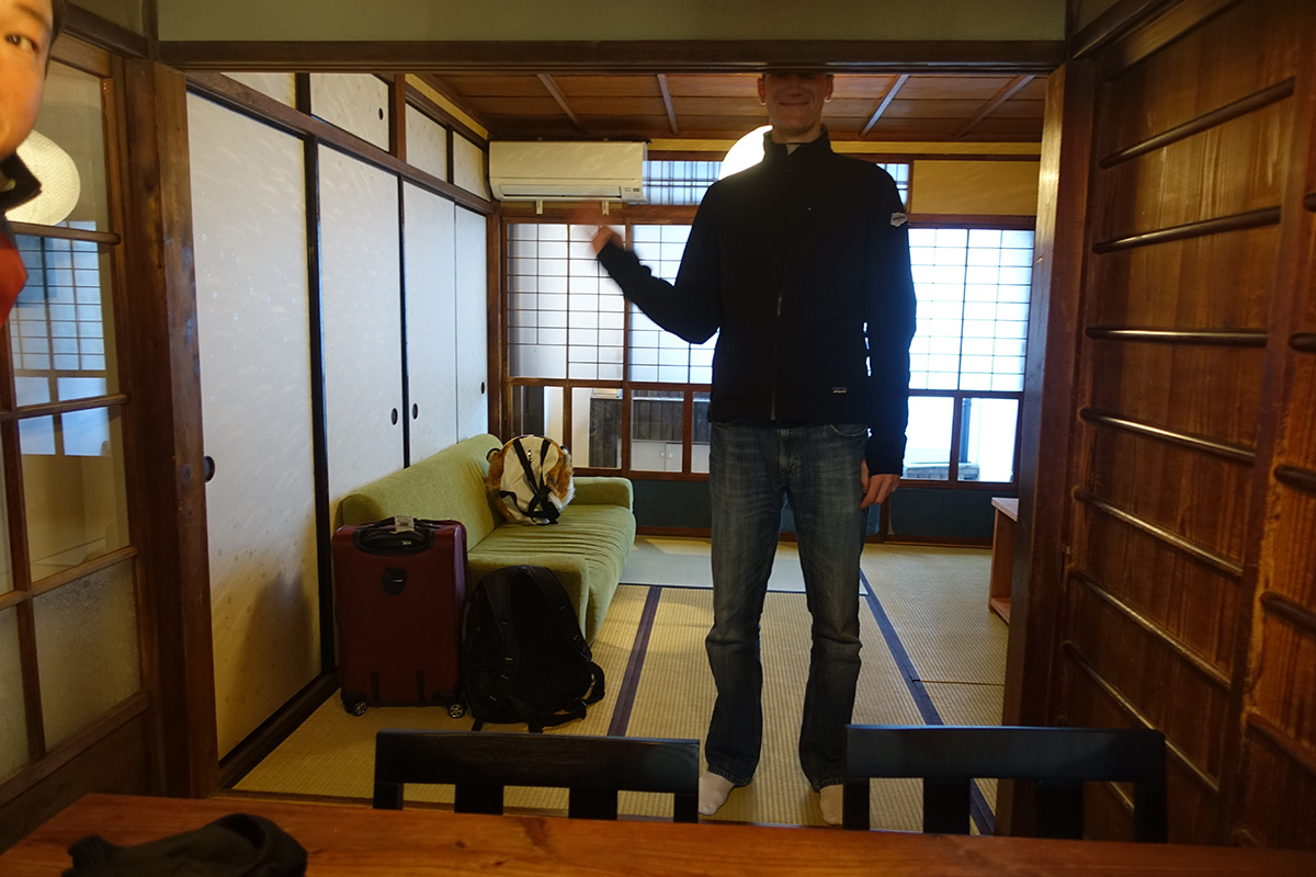After getting my friend some warmer attire, we caught a cab to our rental house. We deliberately chose a traditional house for our Kyoto experience and it turned out to be very traditional. Seriously, it was very nicely kept and a good experience – it was just not made for tall people.