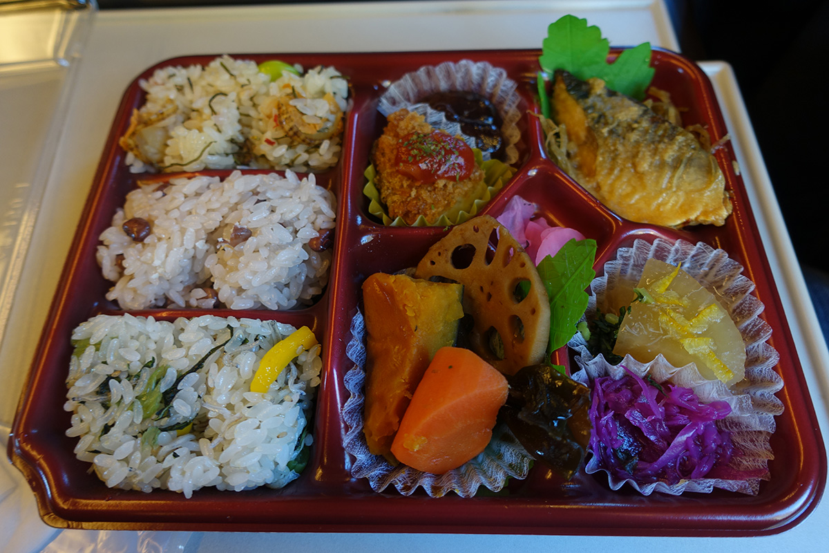 This is one I chose. Yes, it’s a lot of rice but each one had its own flavor (fish, bean, fish). Everything was actually quite good! Usually, getting food at a station or airport in the U.S. means it will be expensive and not very good; getting food at Tokyo station meant it was reasonably priced and very good. Excellent! We also got some sushi, which was packed with an ice bag in the plastic carry bag we were given. It was delicious. 🙂