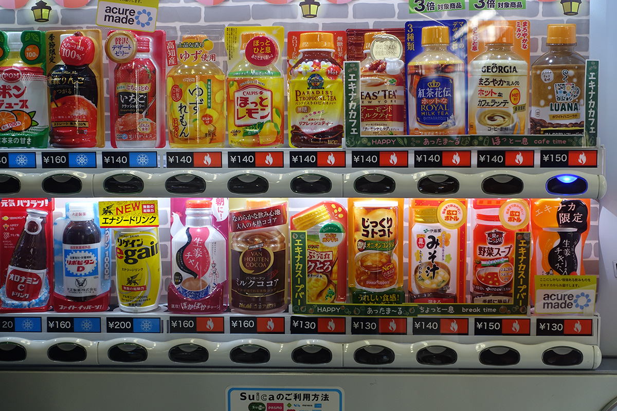 The 3 of us (+ tiger) walked briskly to Shibuya Station to catch our train and decided to warm up with something warm from the vending machine on the platform. It’s pretty cool that vending machines can serve up hot drinks as well as cold here.