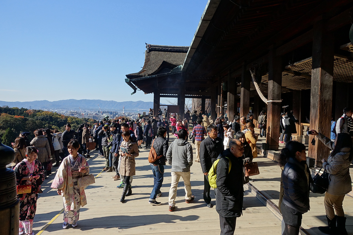 Once our tickets were purchased, we were able to go into the temple area with its famous deck and view of the surrounding hills and city of Kyoto.
