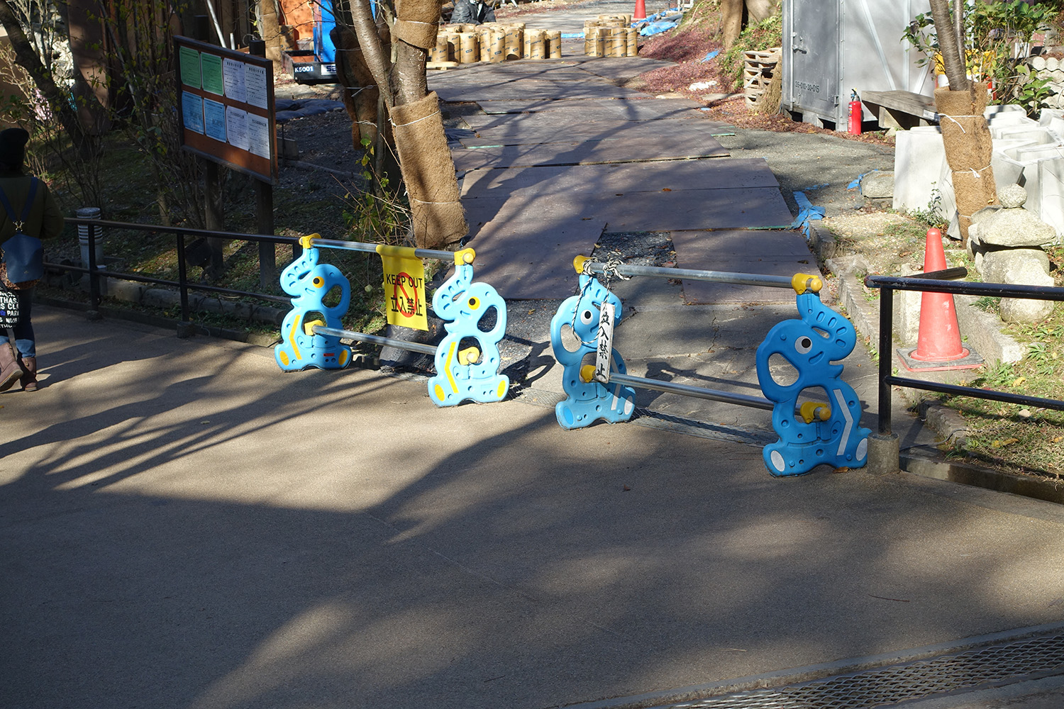 Funny side note: I noticed in Kyoto that various construction barriers have fun characters attached to them. The ones at Kiyomizu-dera were shaped like happy blue elephants. I like this. 🙂