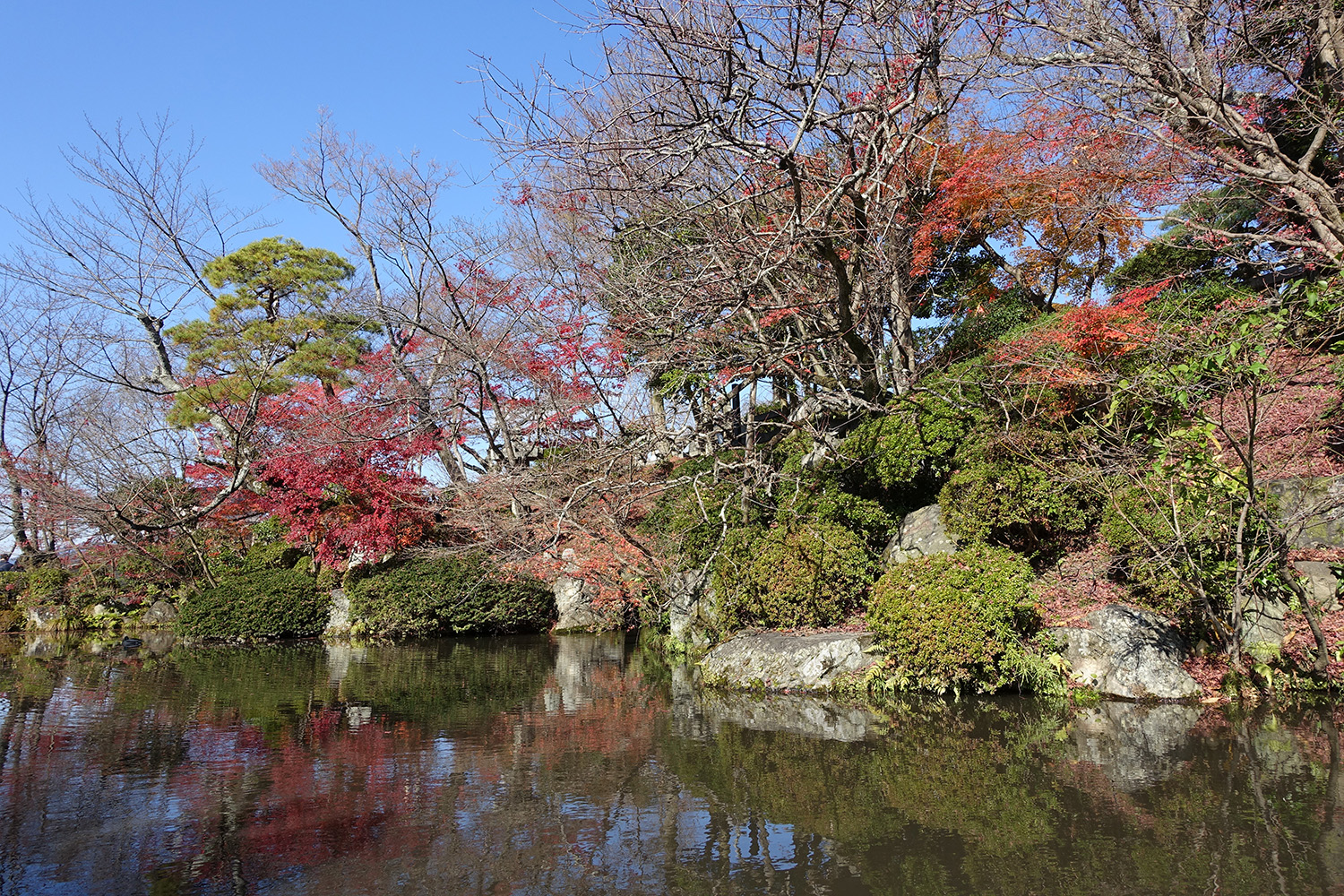 There is a pond near the entrance/exit that I had to include her as well. Though a lot of the trees around it are missing their leaves, a few remain and have bright pops of color.