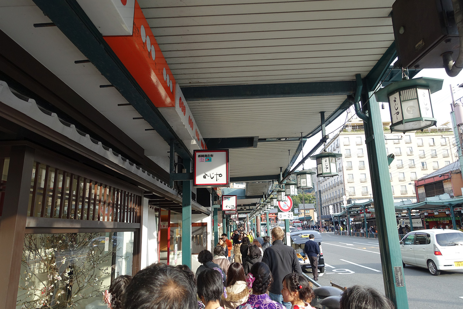 After visiting three temples in succession, we were ready for a break and some food before darkness fell so we headed for the Gion district to do some shopping and get a bite to eat. Sunset hits at 4 pm so we had a couple of hours of daylight left to browse around the main street, Shijo Dori.