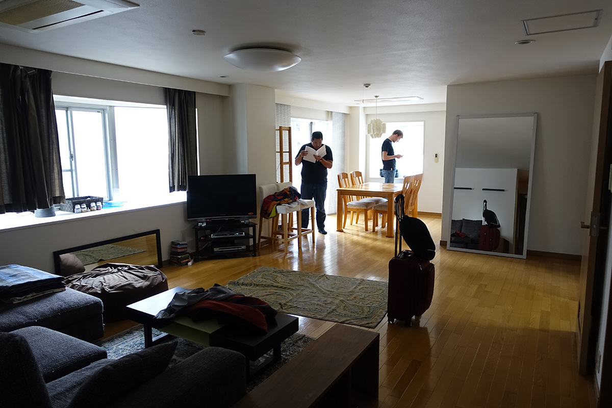 We arrived at our apartment and found that, as advertised, it is the largest of the places we have rented in Japan. It is a real 2-bedroom, 2-bathroom apartment with a large open living area.