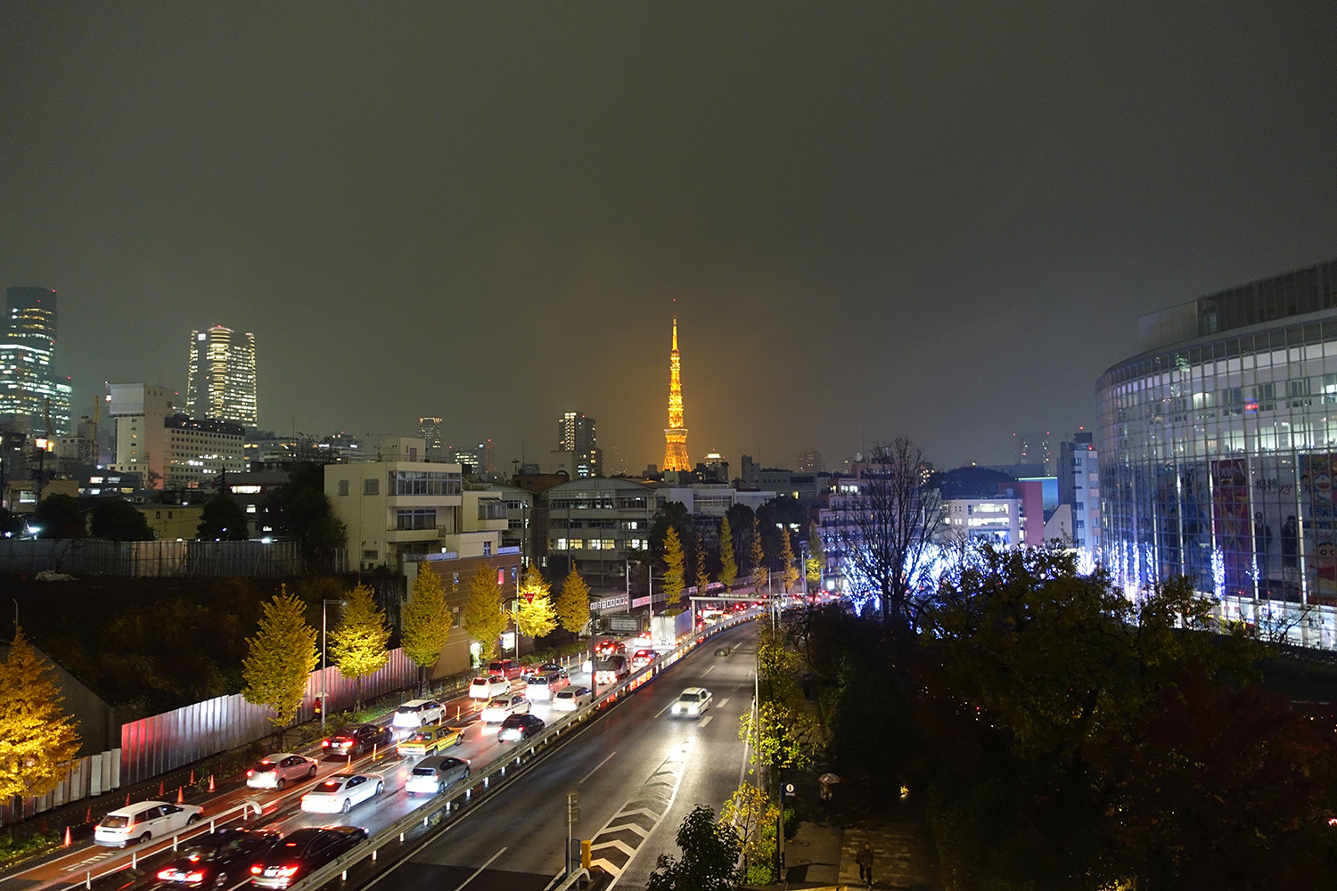Once we had finished our snacks, we headed out into the night to find some dinner at a yakitori place recommended by our apartment host. On the way out of Roppongi Hills, we had a great view of the illuminated Tokyo Tower.