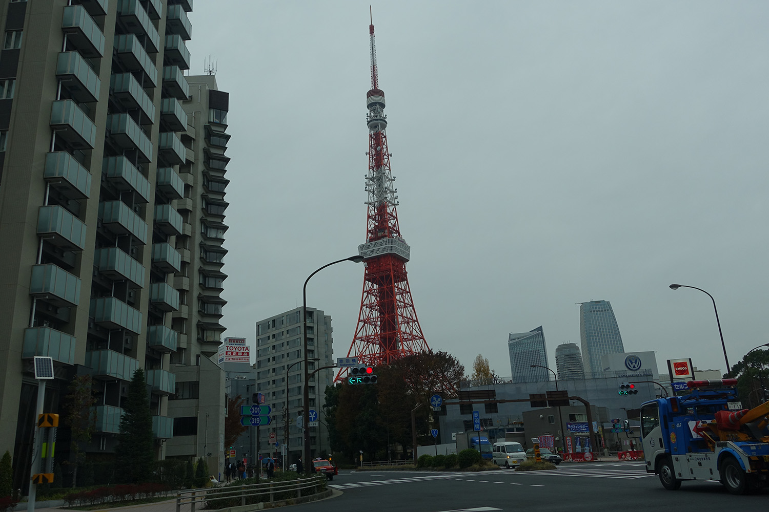 We got off at Shinagawa station and then caught a cab from there to Roppongi where our next apartment rental was located. On the way, we passed the Tokyo Tower. This was the best shot I could get as the car was moving along.