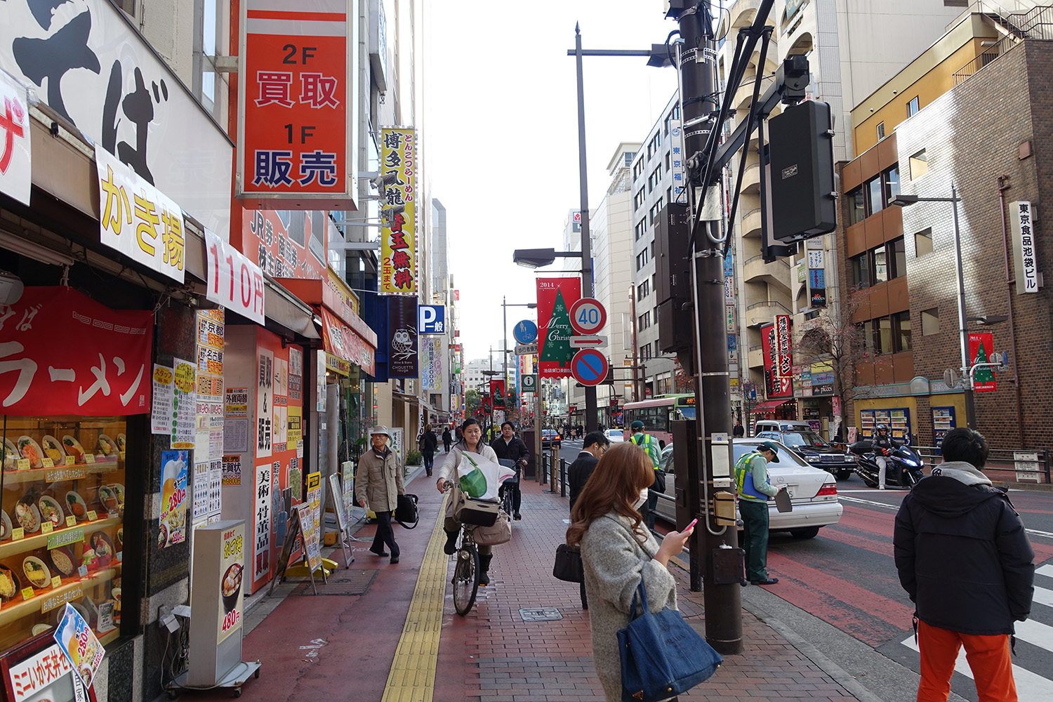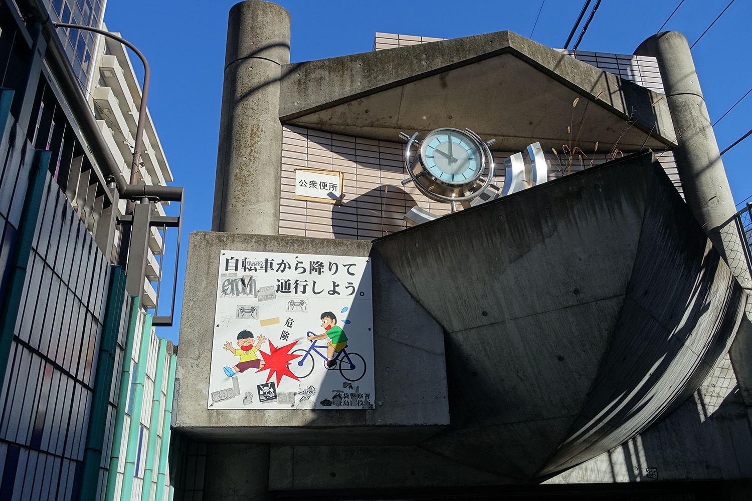 Here is where I was on Google Maps. After spending some time in the park and smiling like a loon because I recognized things from Durarara!!, I meandered through side streets towards the Animate store. On the way I had to cross the railway tracks as the store was on the opposite side of the station. I decided to take a pedestrian underpass and found a sign warning cyclists that people may be sitting in the tunnel so cyclists had better watch out.