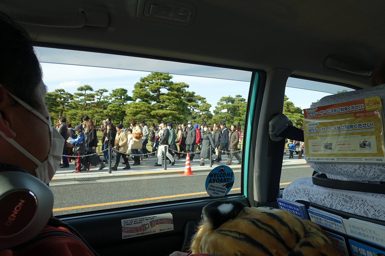 Surprisingly, the Marunouchi district was crowded with people, which was odd for a Sunday considering it is primarily a business district (we visited on Day 3). Peaking out of the cab, it appeared everyone was queuing up at the Imperial Palace.
